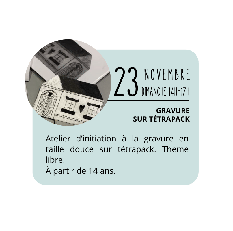 > Atelier proposé le dimanche 23 Novembre de 14h à 17h.